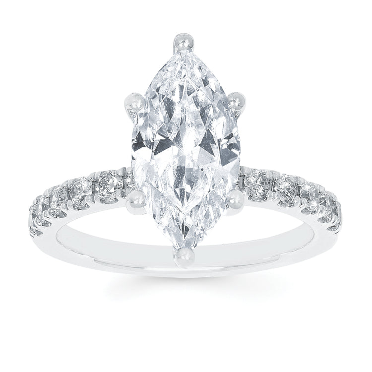 Classic Bridal: 3/8 Ctw. Diamond Mounting with 2Ct. Lab Grown Marquise Center Diamond in 14K Gold Engagement ring and wedding band sold separately
