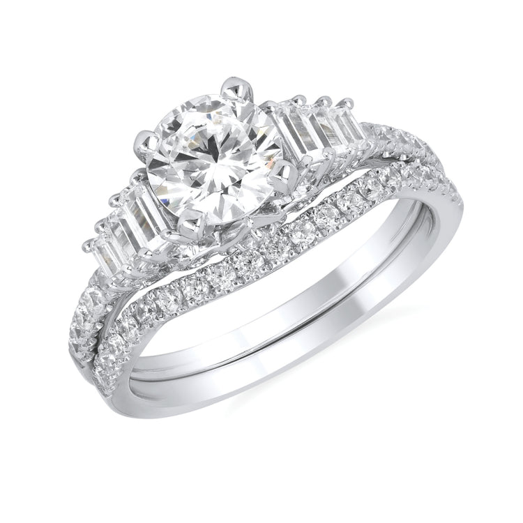 Forever Elegant 3/8 Ctw. Diamond Semi Mount shown with 1 Ct. Round Center Diamond in 14K Gold Forever Elegant™ 1/5 Ctw. Diamond Wedding Band in 14K Gold Items also available to purchase separately