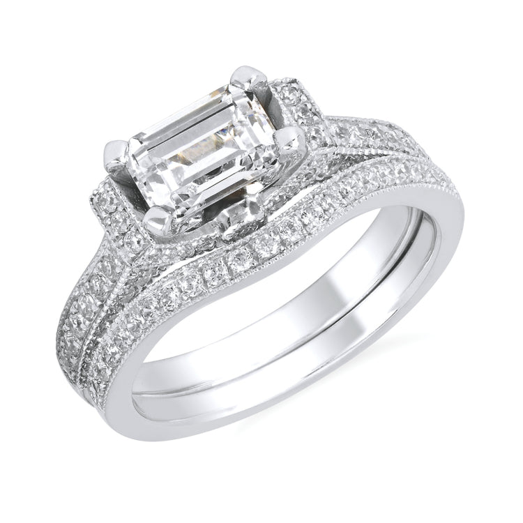 Forever Elegant 1/2 Ctw. Diamond Semi Mount shown with 1 Ct. Emerald Center Diamond in 14K Gold Forever Elegant 1/6 Ctw. Diamond Wedding Band in 14K Gold Items also available to purchase separately