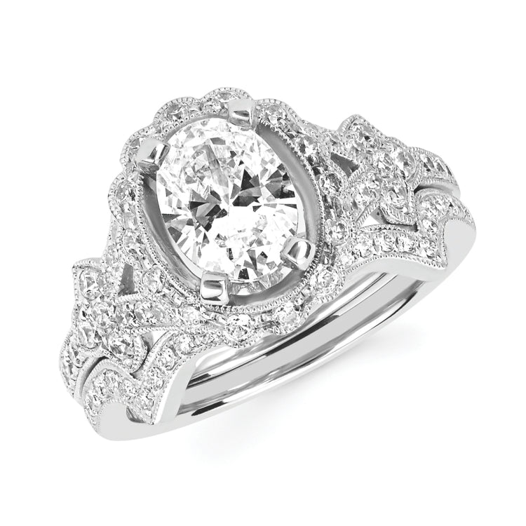 Forever Elegant 1/2 Ctw. Diamond Semi Mount shown with 1 Ct. Oval Center Diamond in 14K Gold Forever Elegant 1/8 Ctw. Diamond Wedding Band in 14K Gold Items also available to purchase separately