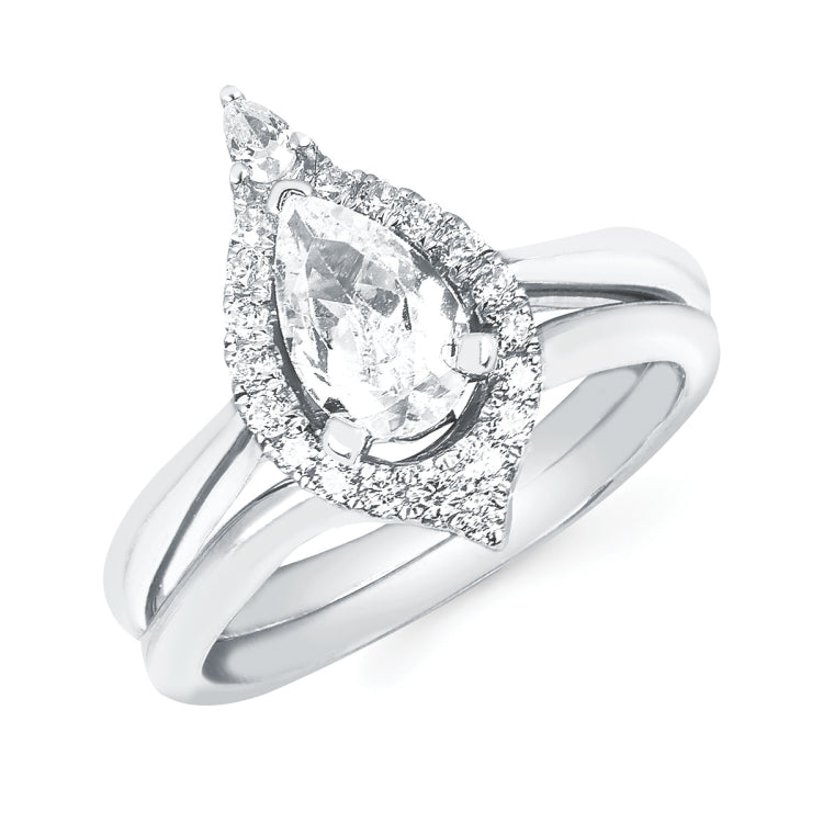 Forever Elegant 1/4 Ctw. Diamond Semi Mount shown with 3/4 Ct. Pear Center Diamond in 14K Gold Forever Elegant Wedding Band in 14K Gold Items also available to purchase separately