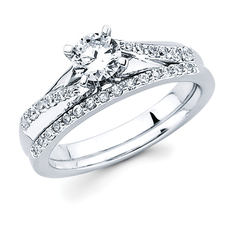 Modern Bridal: 1/8 Ctw. Diamond Split Shank Semi Mount shown with 1/2 Ct. Round Center Diamond in 14K Gold 1/8 Ctw. Diamond Wedding Band in 14K Gold Items also available to purchase separately