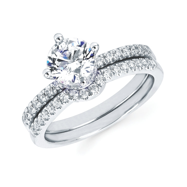 Modern Bridal: 1/4 Ctw. Diamond Semi Mount shown with 1 Ctw. Round Center Diamond in 14K Gold 1/8 Ctw. Diamond Shadow Wedding Band in 14K Gold Items also available to purchase separately