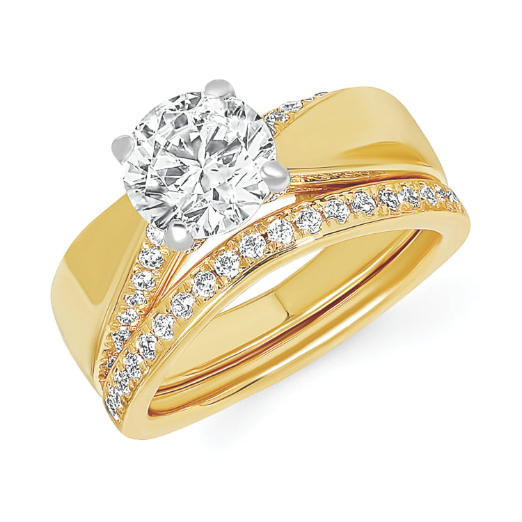 Modern Bridal: 1/6 Ctw. Diamond Semi Mount shown with 1 1/2 Ct. Round Center Diamond in 14K Gold 1/5 Ctw. Diamond Wedding Band in 14K Gold Items also available to purchase separately