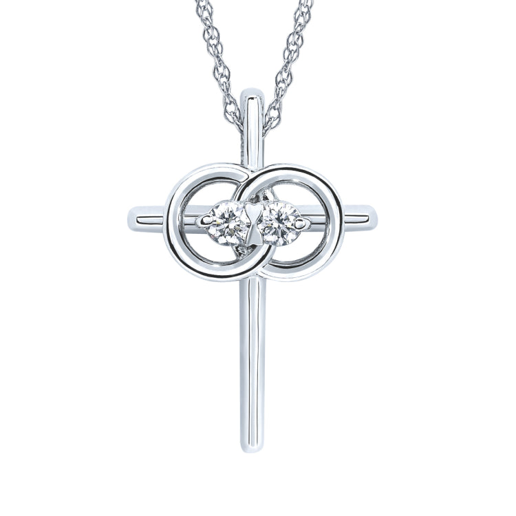 Christian Marriage Symbol Cross Pendant in 14K Gold with 2 Prong Set Diamonds equaling 1/8 Ctw.