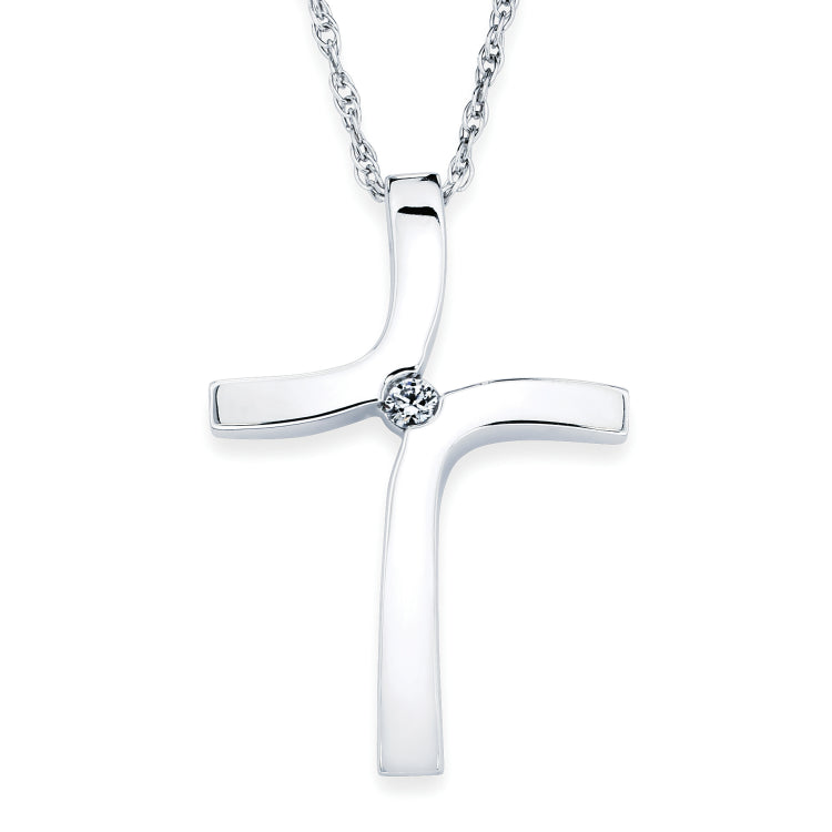 .03 Ct. Single Diamond Cross Pendant in 14K Gold with 18 Chain