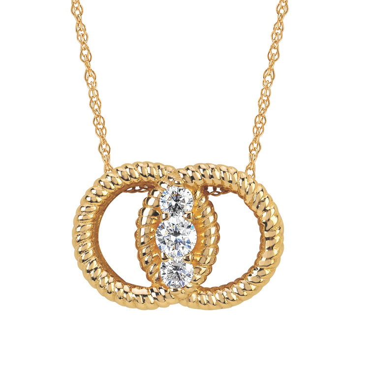 Diamond Marriage Symbol Pendant in 14K Gold with 3 Diamonds equaling 1/4 Ctw. Rope Style