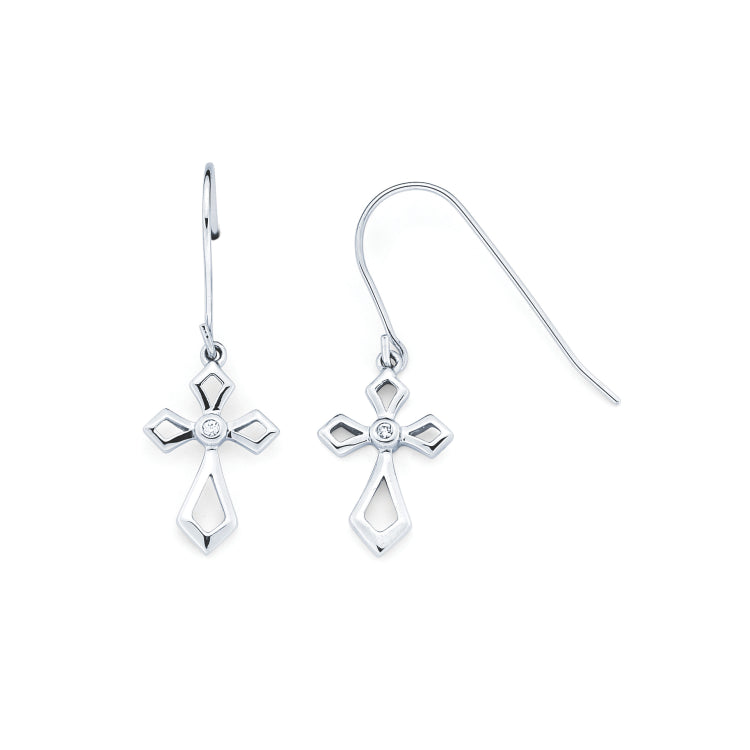 Diva Diamonds Cross Earrings in Sterling Silver with .02 Ctw. Diamonds