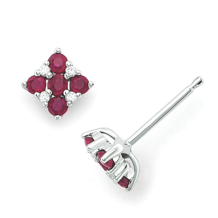 9/10 Tgw. Ruby and Diamond Square Stud Earrings in 14K Gold (Includes .06 Ctw. Diamonds)