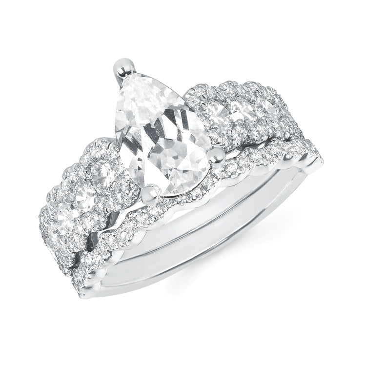 Classic Bridal: 1 Ctw. Diamond Semi Mount shown with 1.50 Ct. Pear Center Diamond in 14K Gold 1/8 Ctw. Diamond Wedding Band in 14K Gold Items also available to purchase separately